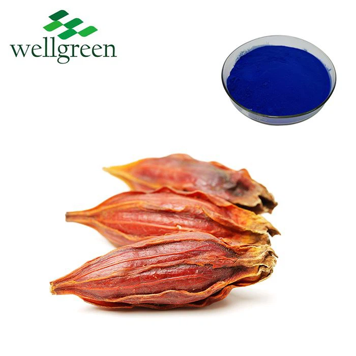 Gardenia modrý pigment rozpustný vo vode, bezpečný na použitie, stabilný v prírodných podmienkach.